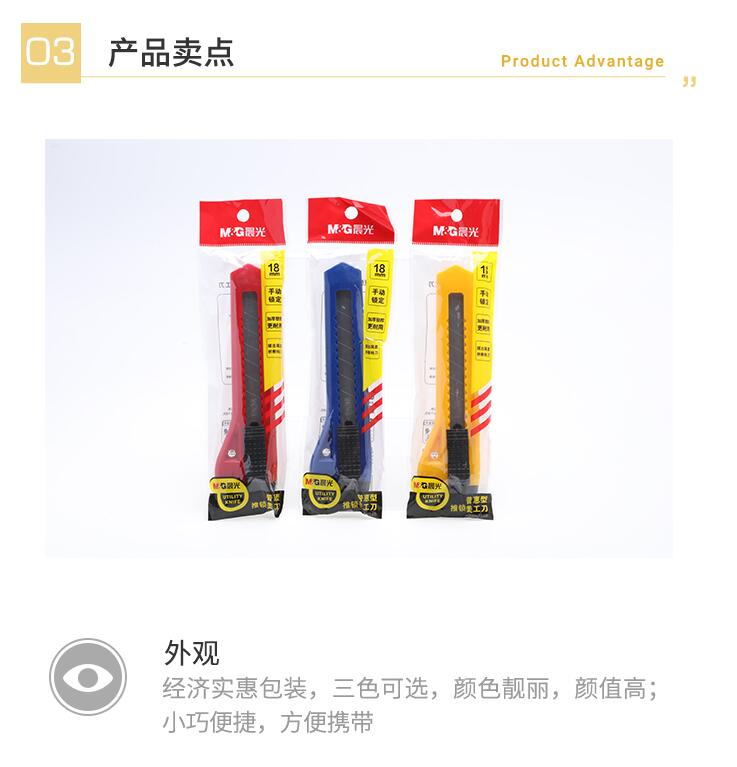 晨光美工刀 美工刀3把 大號壁紙刀小刀裁紙刀片快遞刀美工刀片工業(yè)用手動(dòng)推鎖美術(shù)刀學(xué)生削筆刀